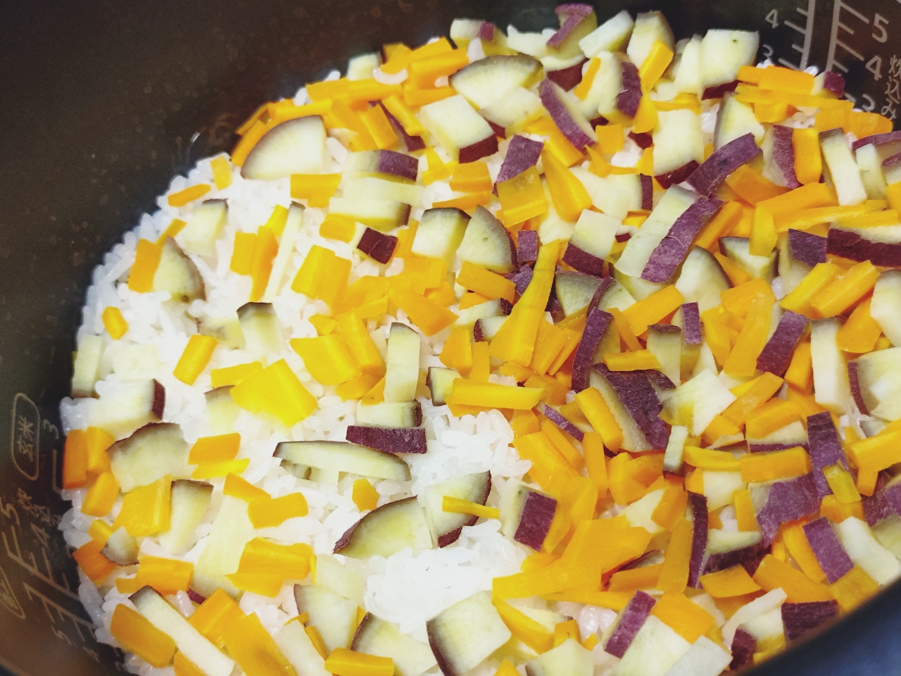 お昼食べたけどまたお腹空いたなあ〜 いつか作った炊き込みごはん、さつまいもとにんじん☆ 皆さんは炊き込みごはんの具材は何が好きですか?