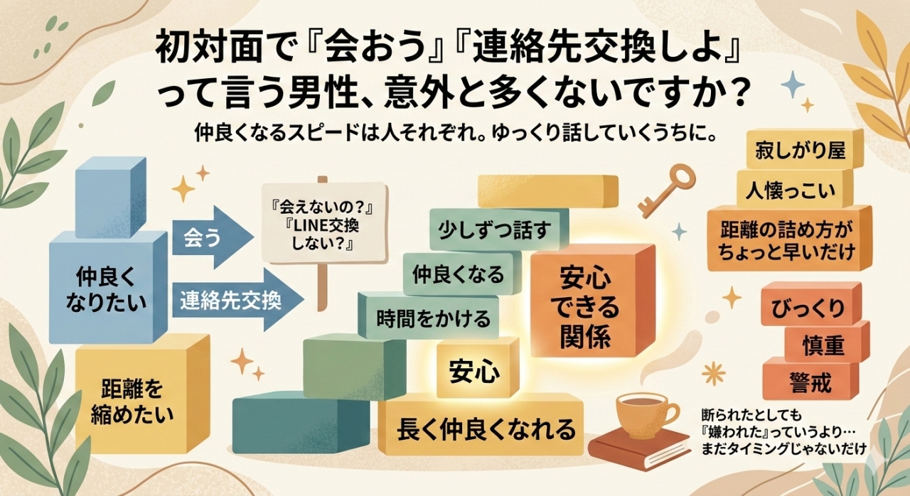 初対面で“会おう”“連絡先交換しよ”って言う男性、意外と多くないですか?